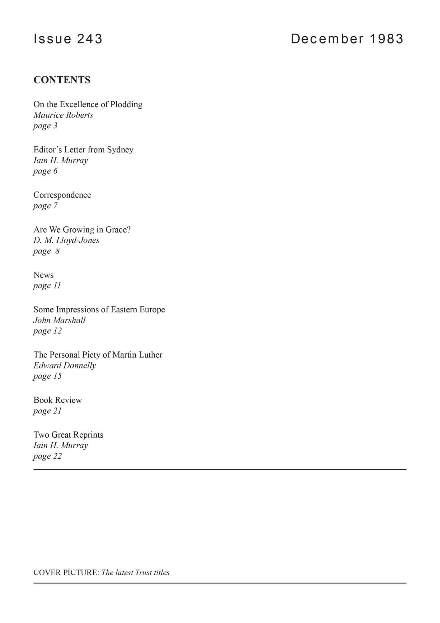 | Letter from Sydney (5) — Murray, Iain H | 6-8 |