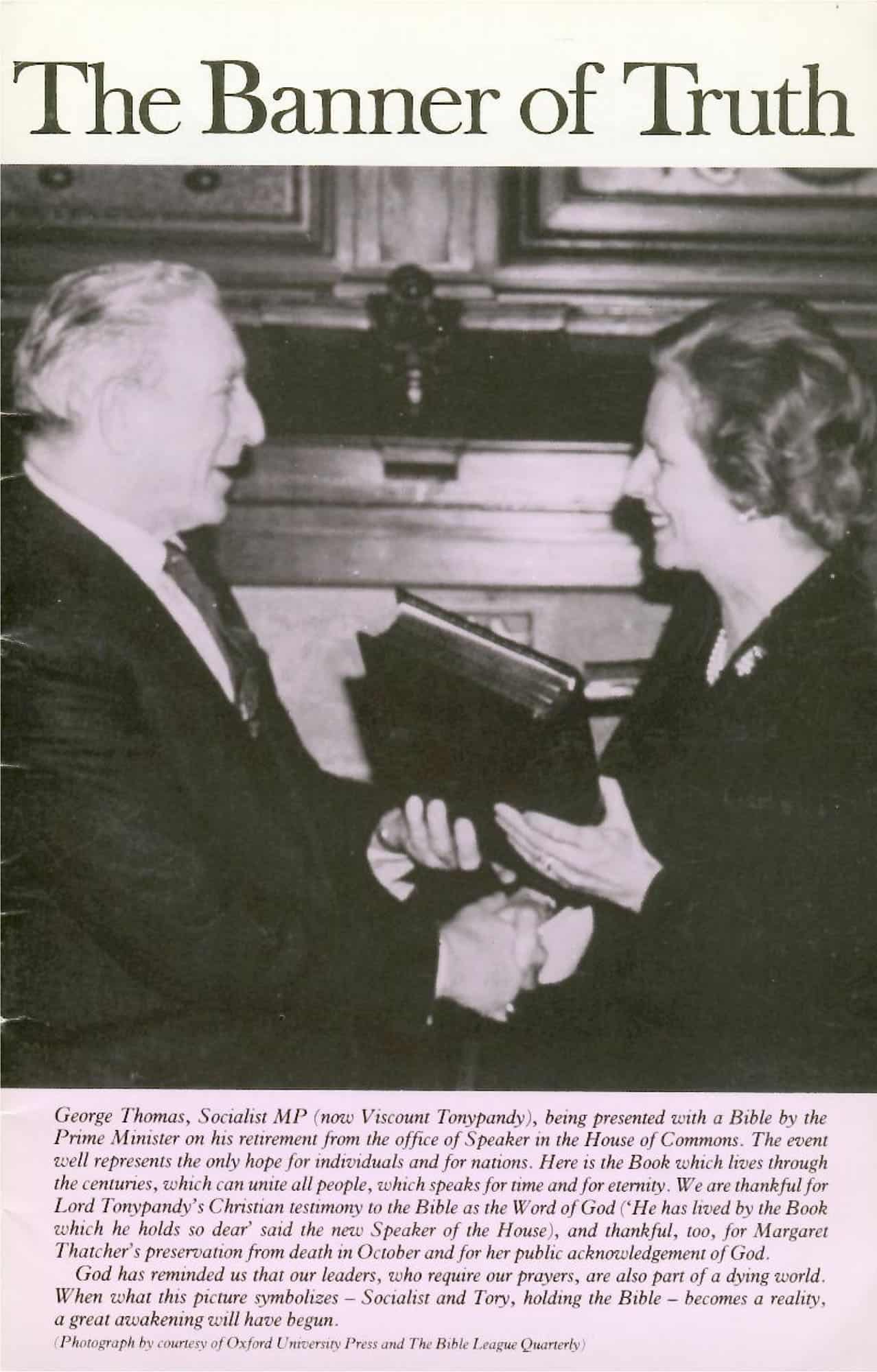 This binder holds two years’ issues and is made of stout board, with wire rods to hold the magazine in place. The name ‘Banner of Truth’ is stamped in gold on a black panel on the grey cloth.