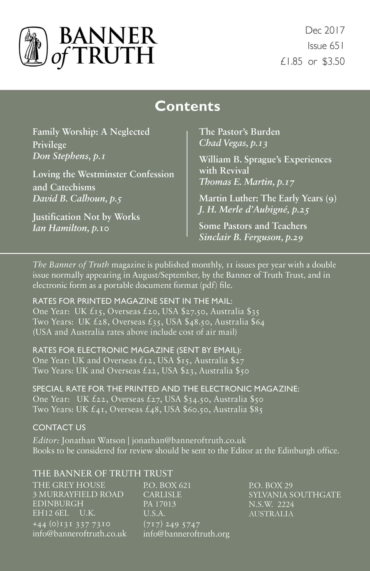 Subscribe to the Banner of Truth Magazine for 11 edifying issues each year (including summer double issue).
