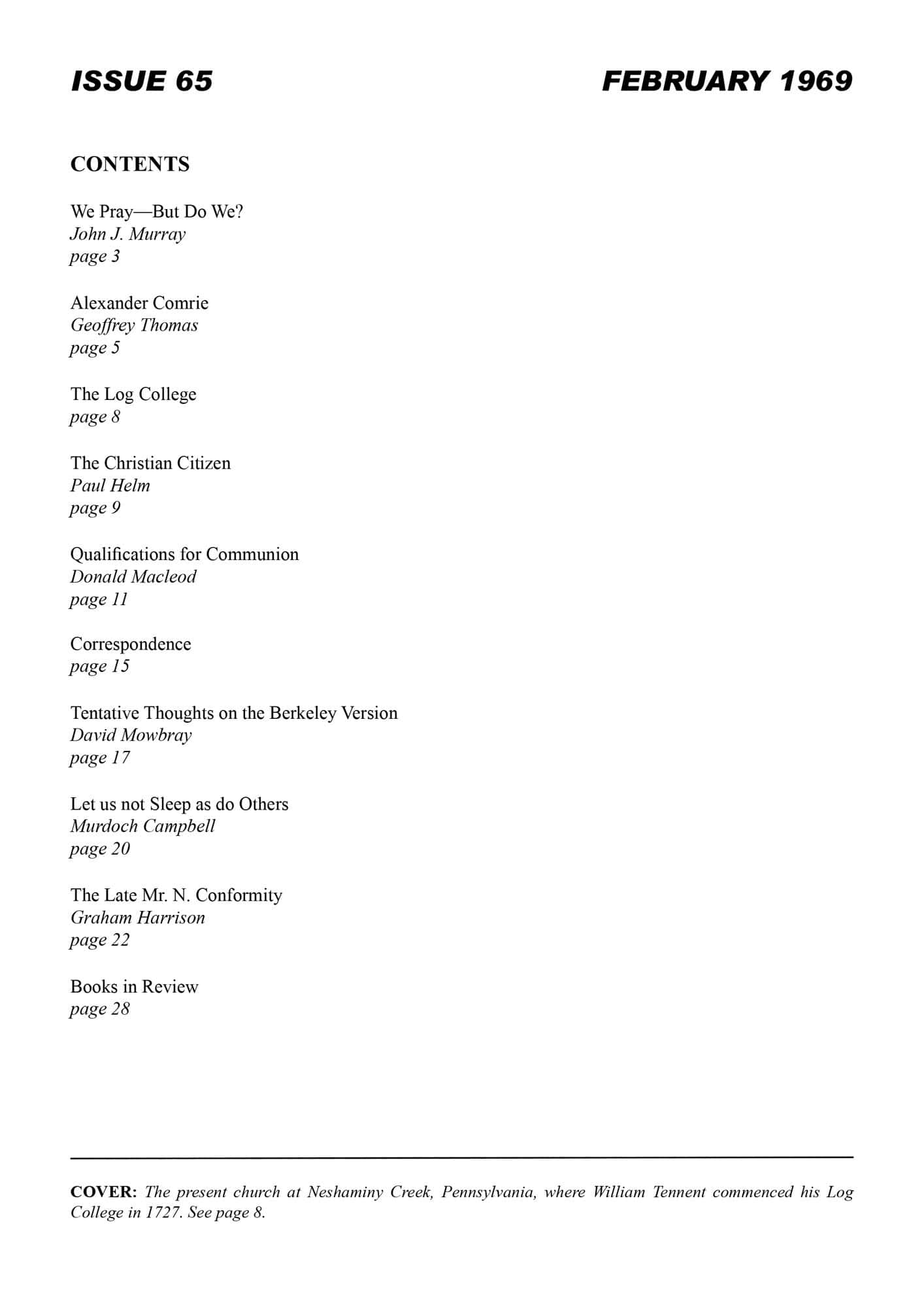 | We Pray: but do we? — Murray, John J | 1-3 |