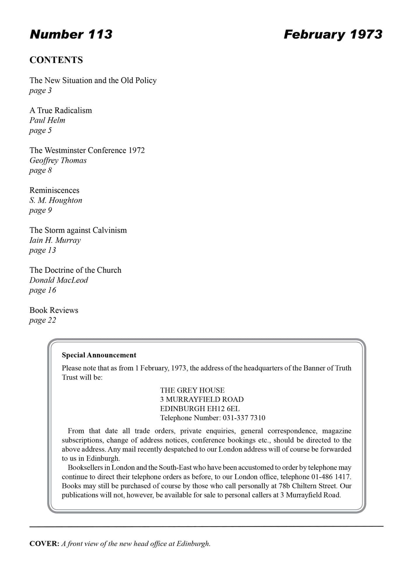 | New Situation and the old policy — Murray, Iain H | 1-4 |