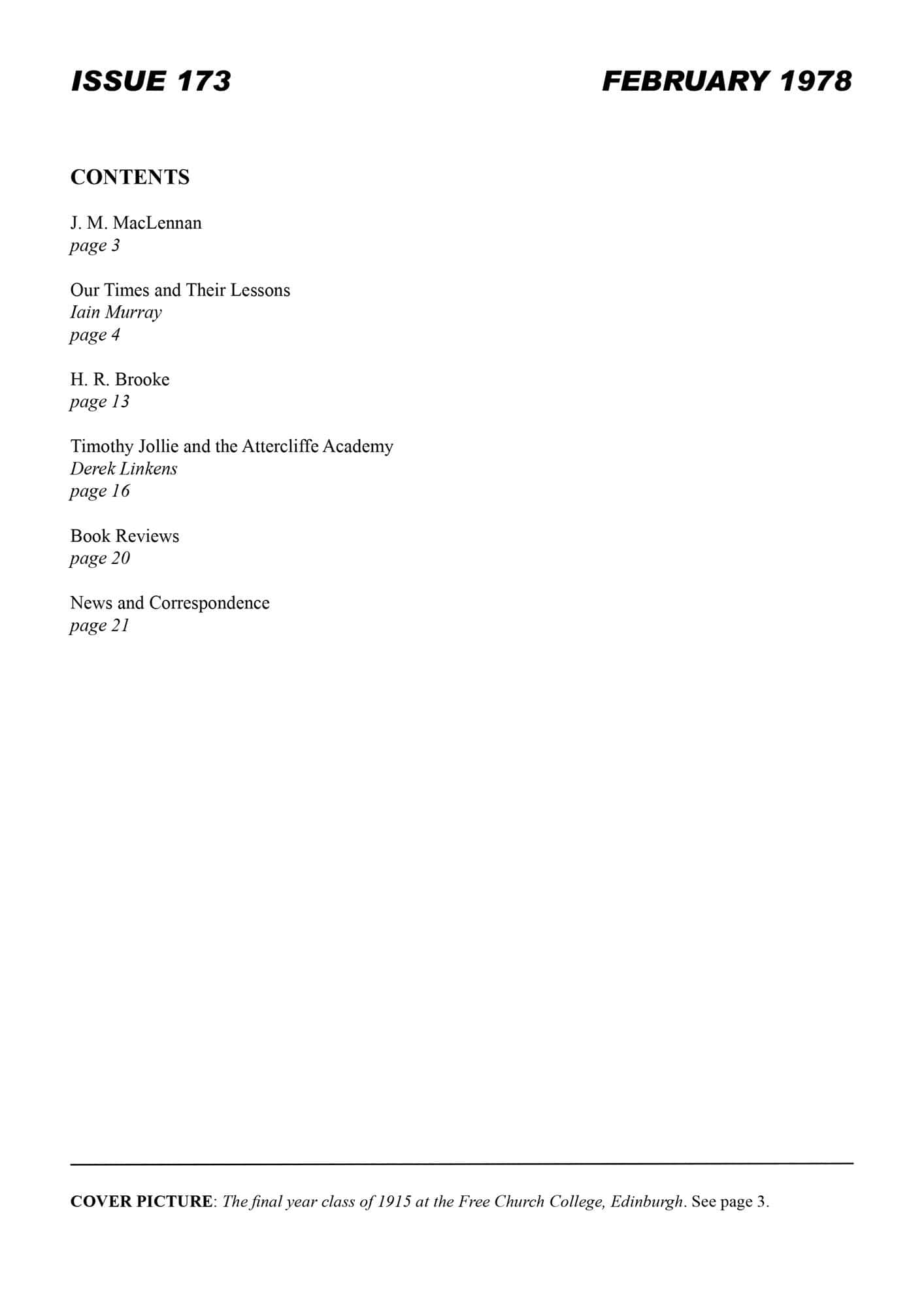 | Our Times and their Lessons — Murray, Iain H | 3-16 |