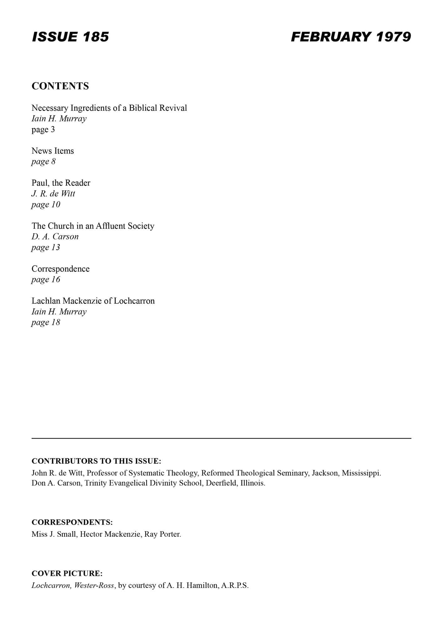 | Necessary Ingredients of a Biblical Revival (2) — Murray, Iain H | 1-9 |