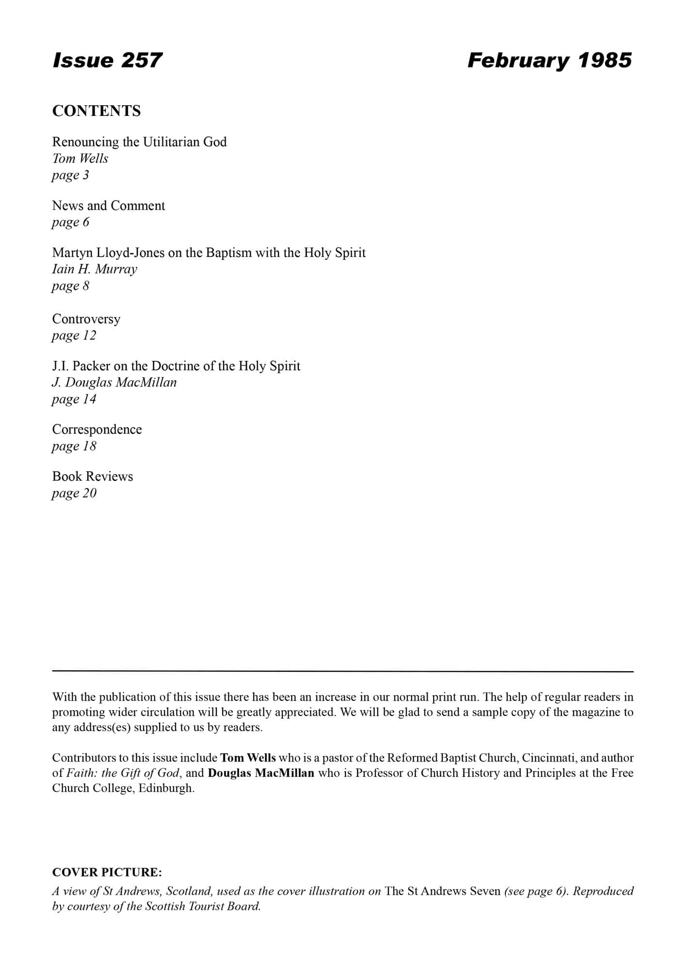 | Martyn Lloyd-Jones on the Baptism with the Holy Spirit — Murray, Iain H | 8-15 |