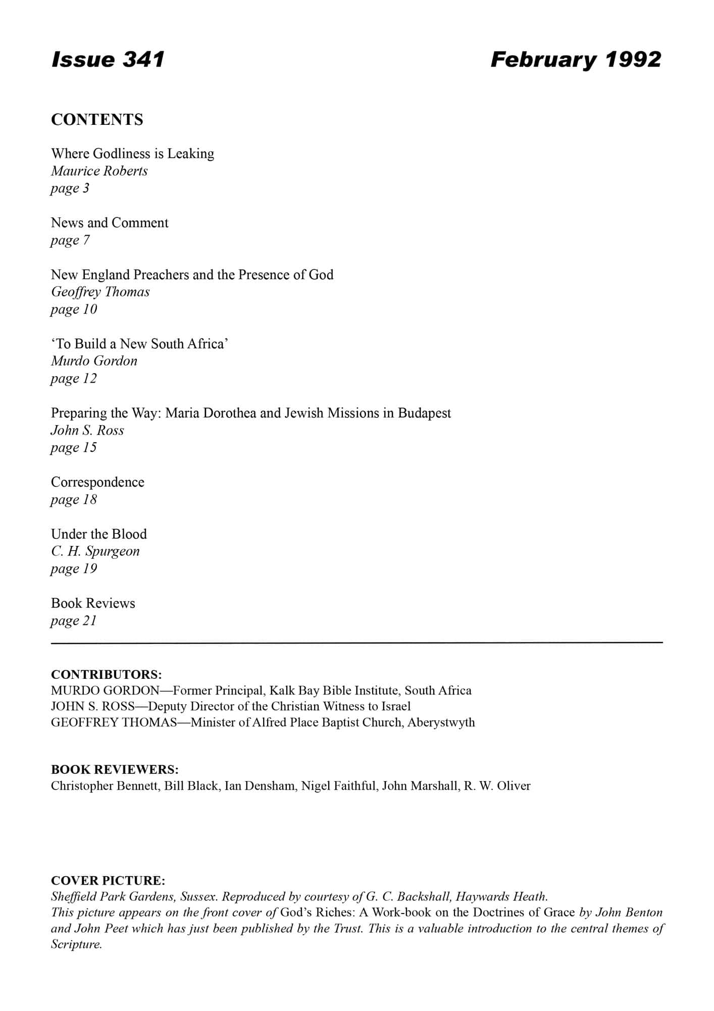 | New England Preachers and the Presence of God — Thomas, Geoffrey | 11-13 |