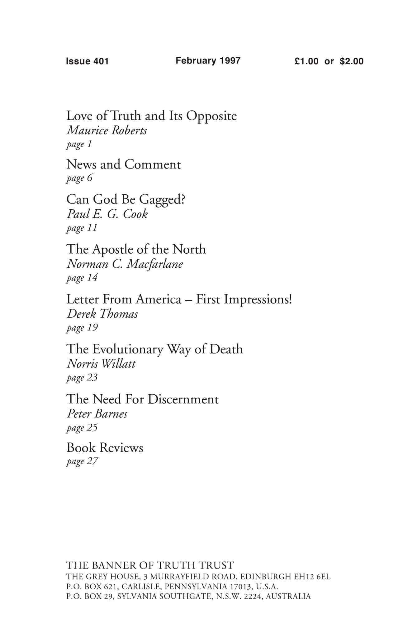| Need for Discernment — Barnes, Peter | 25-26 |