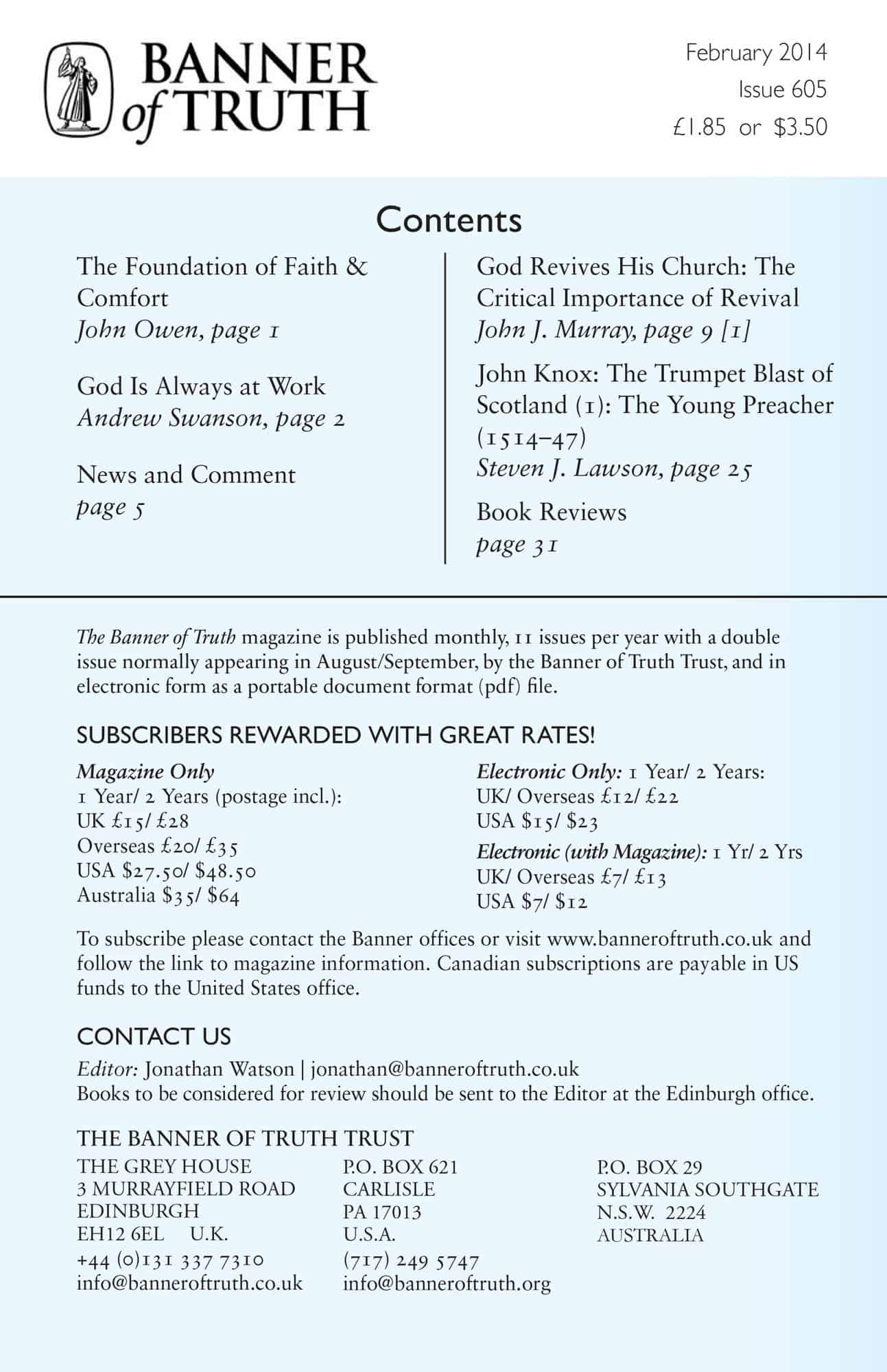 Subscribe to the Banner of Truth Magazine for 11 edifying issues each year (including summer double issue).