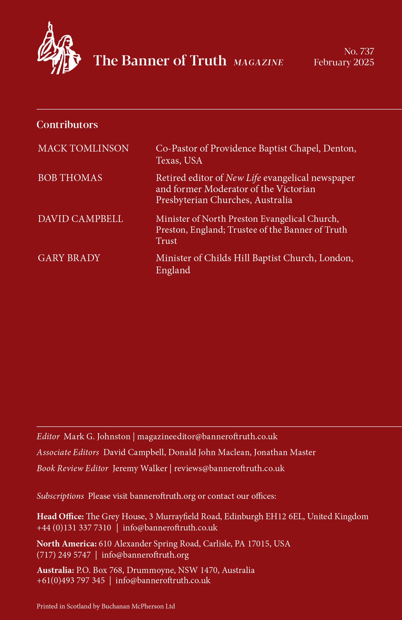 Thomas Chalmers—Part 1: The Early Years — David Campbell | 19 |
