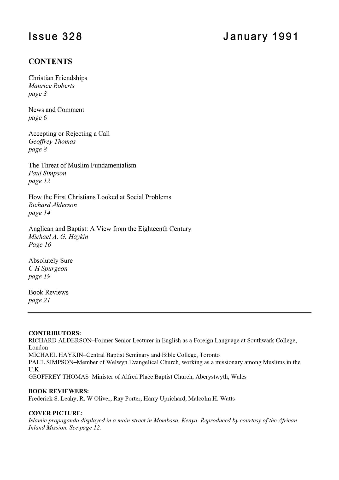 | Anglican and Baptist: A View from the Eighteenth Century (1) — Haykin, Michael A G | 21-25 |