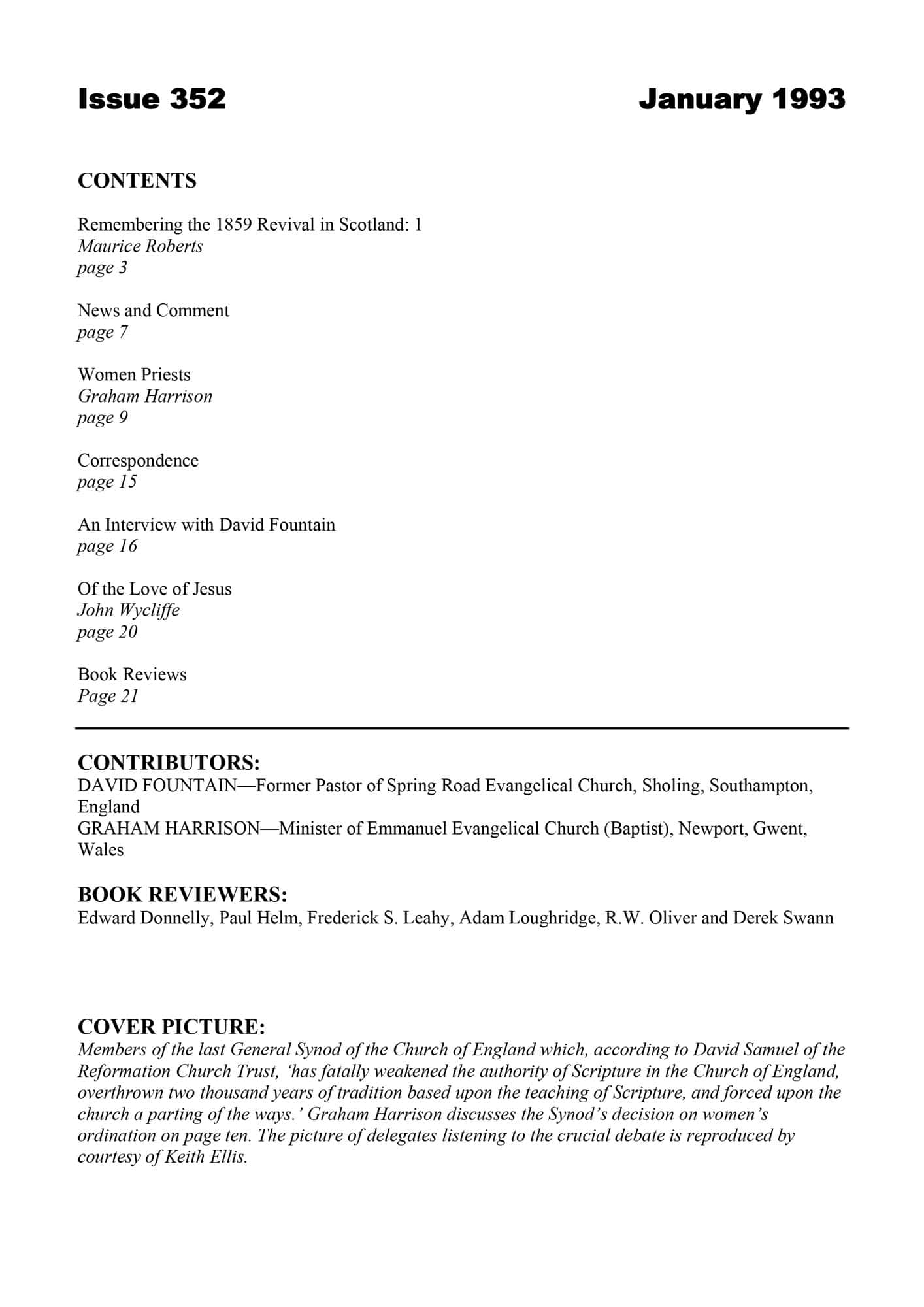 | Women Priests — Harrison, Graham | 10-17 |