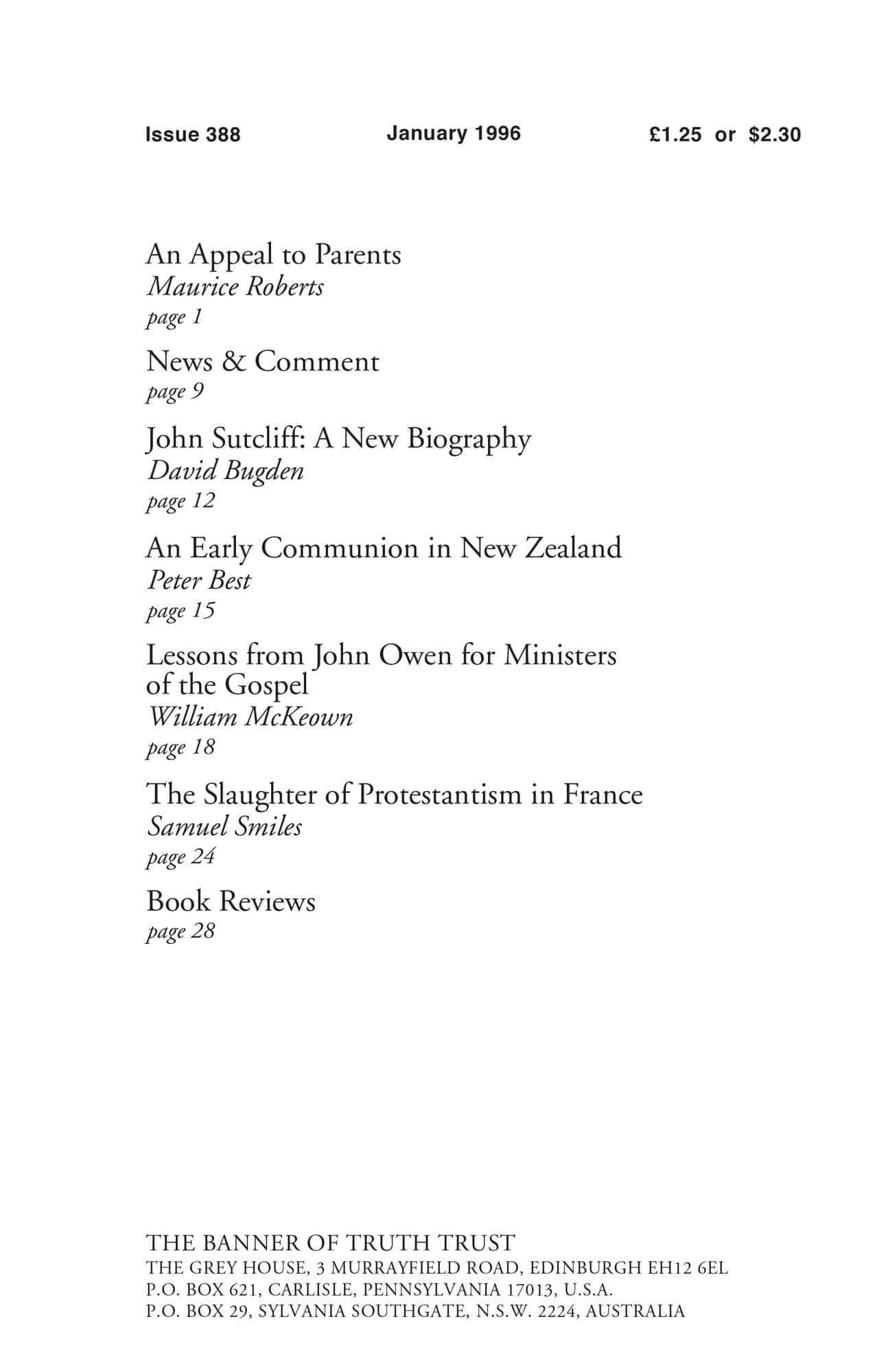 | Early Communion in New Zealand — Best, Peter | 15-17 |