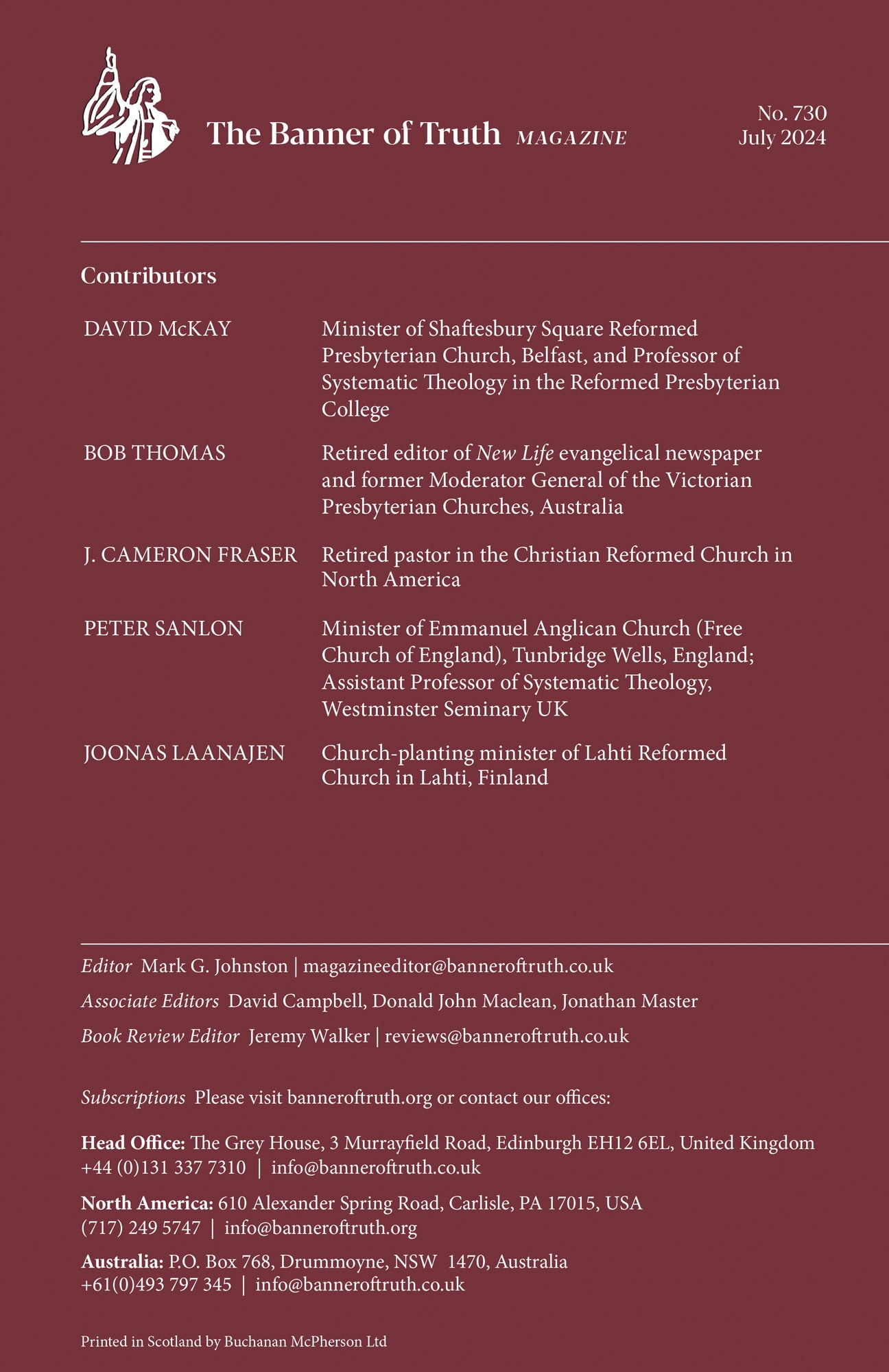 Table of Contents An Awakening in Stepney Green , Iain H. Murray News and Comment Law and Grace: Two Dangers to Avoid , D. M. Lloyd-Jones Time for Upside-Down Thinking , Stuart Olyott Book Review Are We There Yet? , Paul D. Wolfe