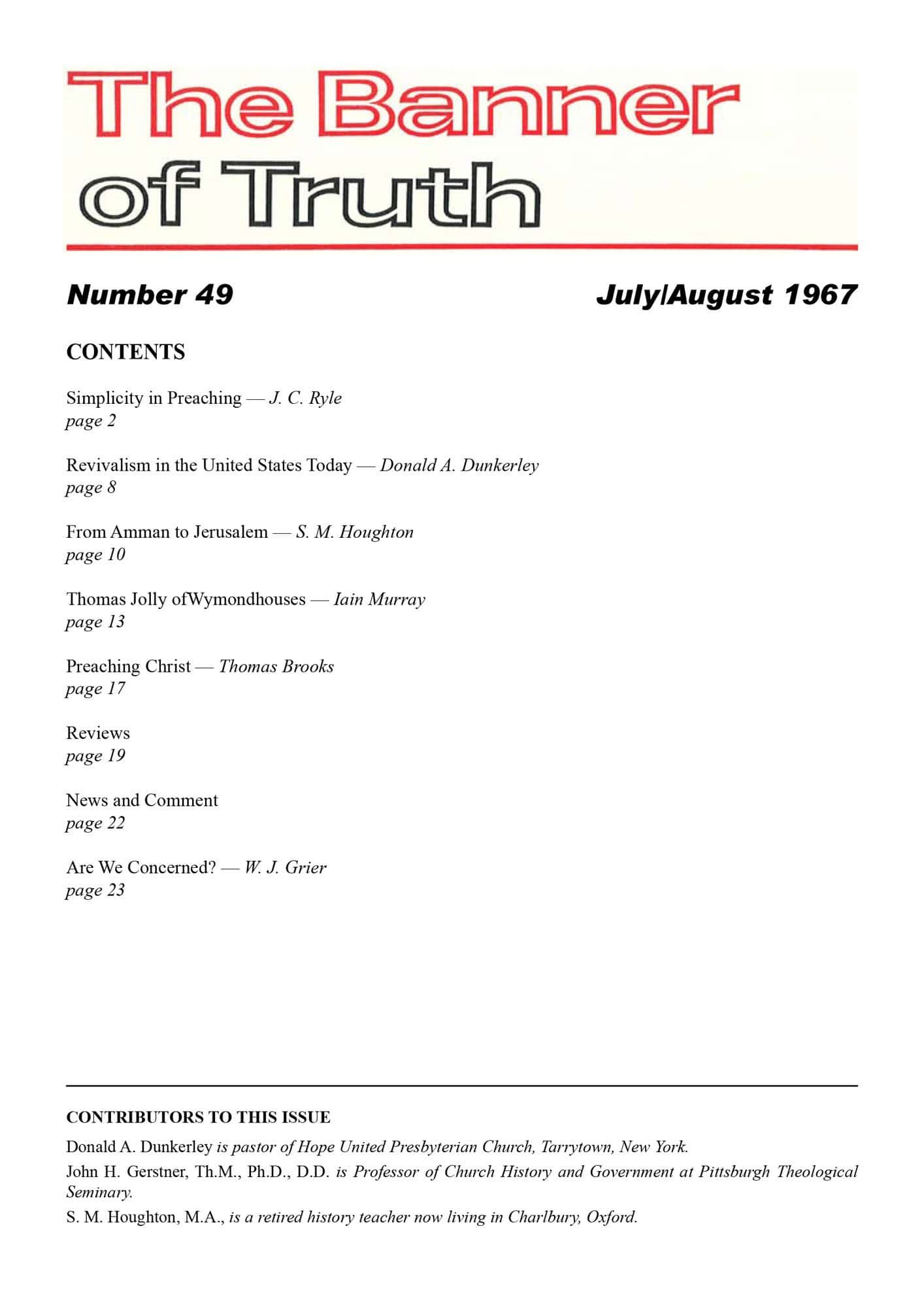 | Revivalism in the United States Today — Dunkerley, Donald A | 8-9 23 |