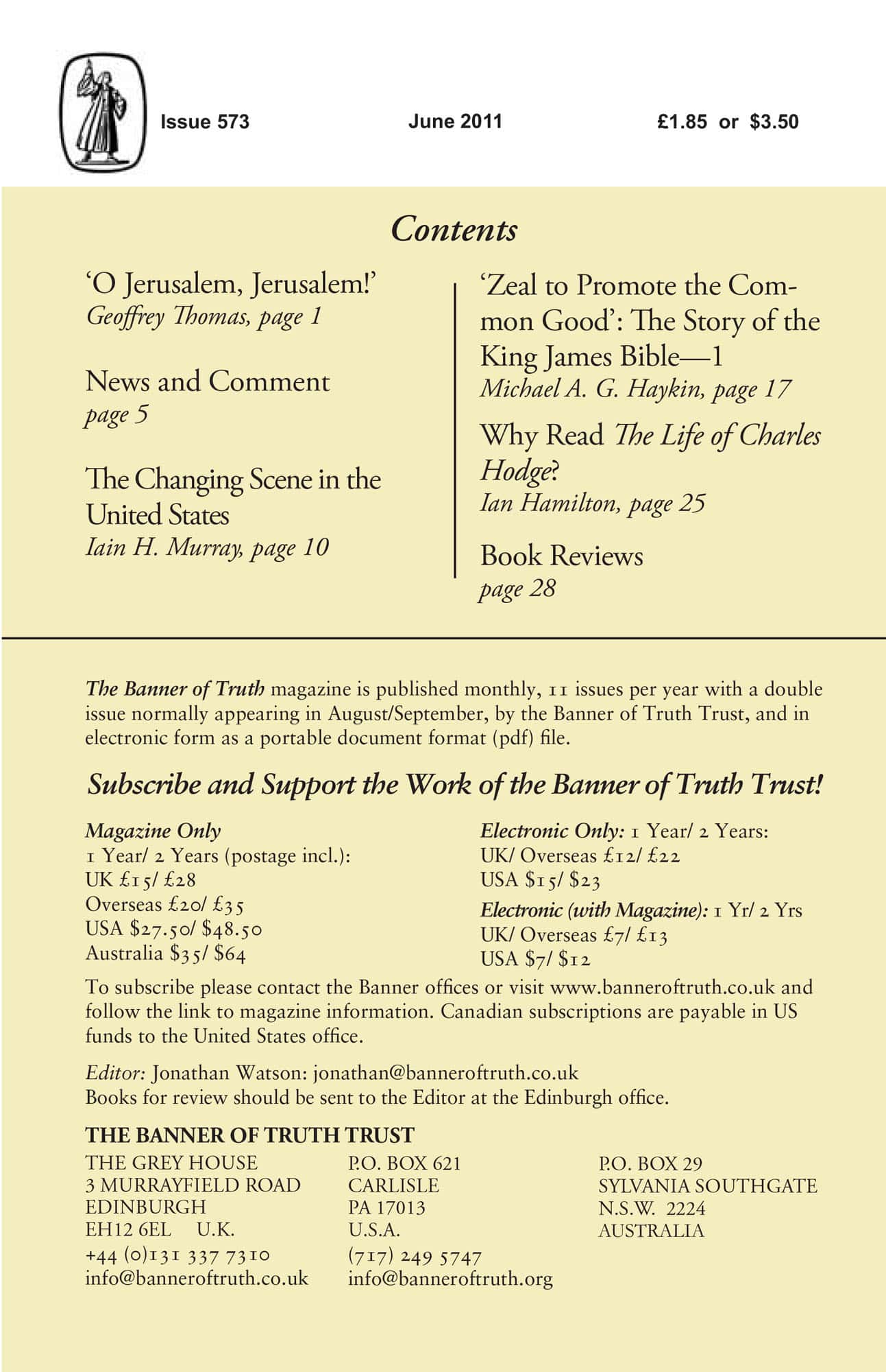 Subscribe to the Banner of Truth Magazine for 11 edifying issues each year (including summer double issue).