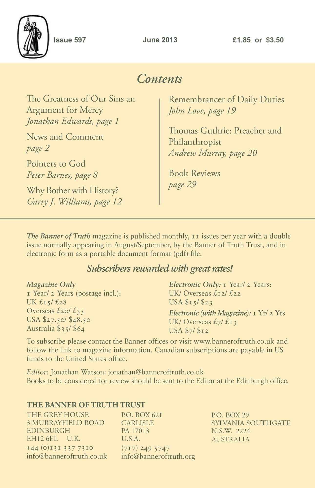 Subscribe to the Banner of Truth Magazine for 11 edifying issues each year (including summer double issue).