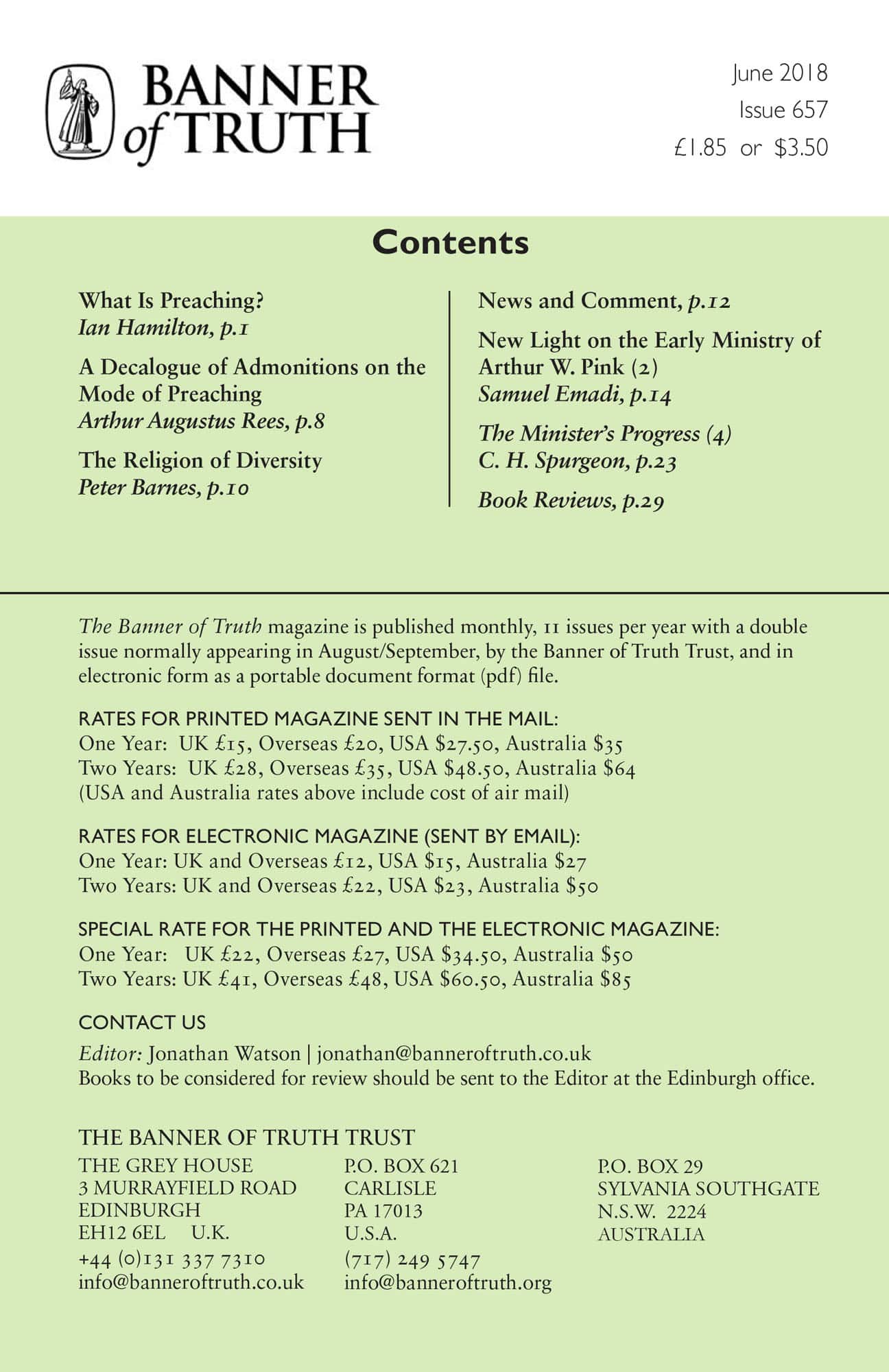 Subscribe to the Banner of Truth Magazine for 11 edifying issues each year (including summer double issue).