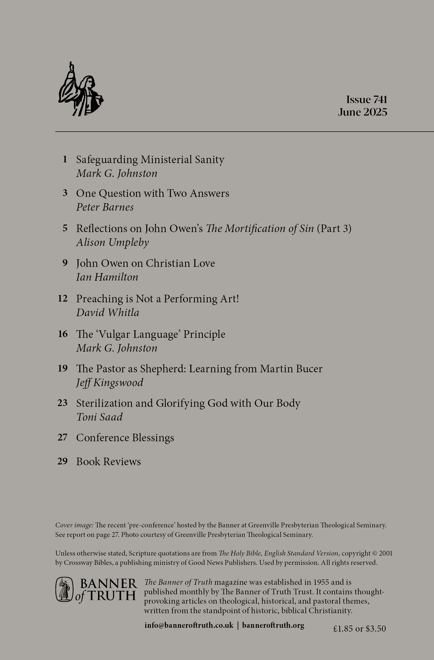 Subscribe to the Banner of Truth Magazine for 11 edifying issues each year (inc. summer double issue).