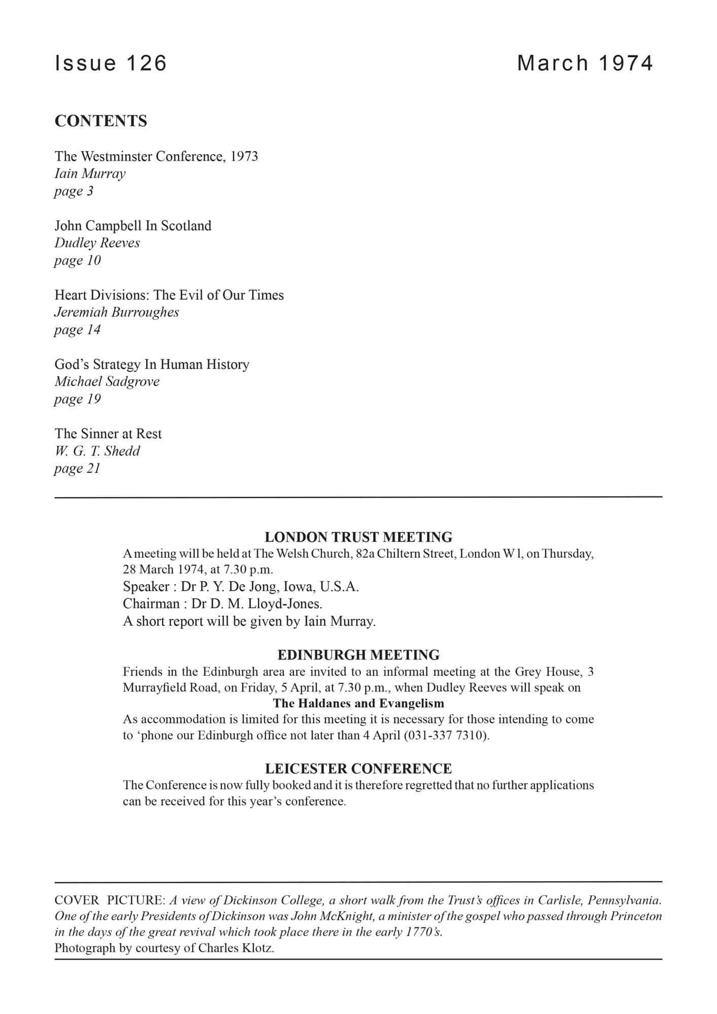 | Westminster Conference 1973 — Murray, Iain H | 1-11 |