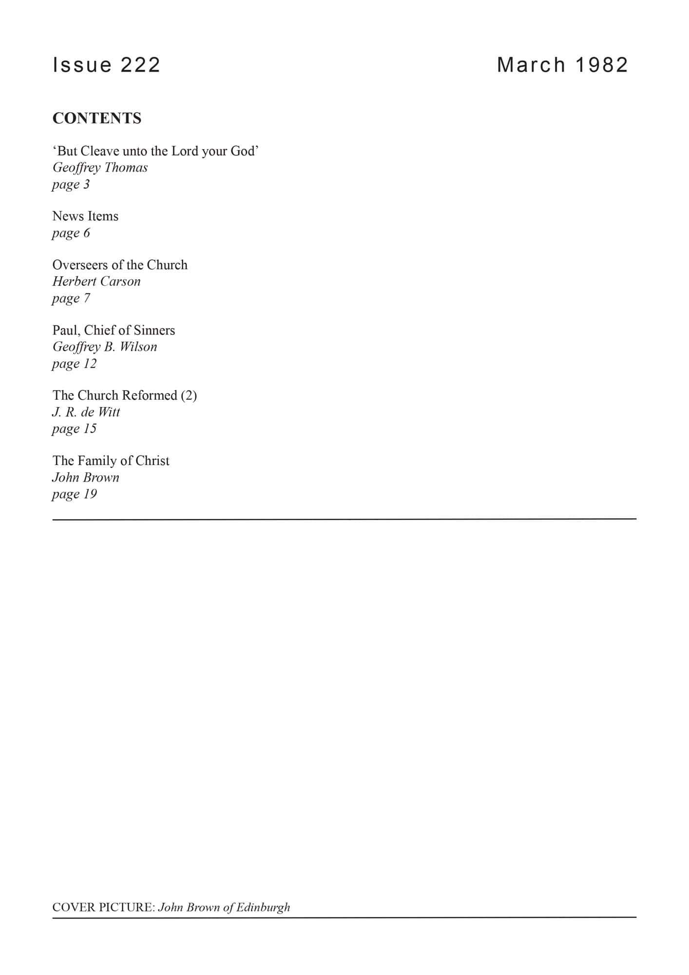 Subscribe to the Banner of Truth Magazine for 11 edifying issues each year (including summer double issue). Table of Contents Greatness of Our Sins an Argument for Mercy — Edwards, Jonathan 1 Pointers to God — Barnes, Peter 8-11 Why Bother with History? — Williams, Garry J 12-18 Remembrancer of Daily Duties — Love, John […]