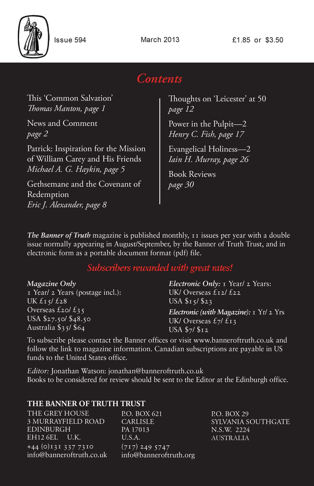 Subscribe to the Banner of Truth Magazine for 11 edifying issues each year (including summer double issue).