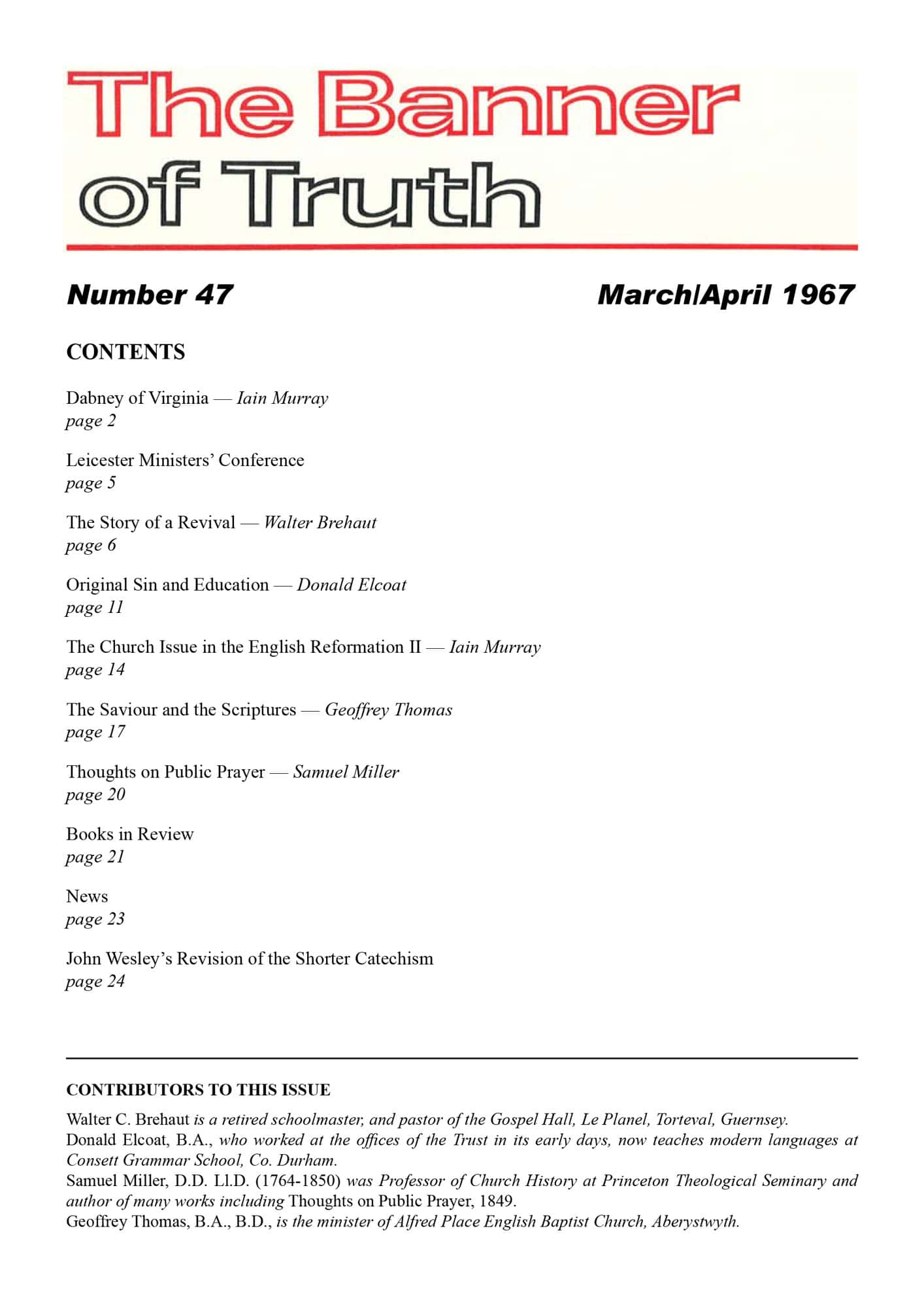 Subscribe to the Banner of Truth Magazine for 11 edifying issues each year (including summer double issue).