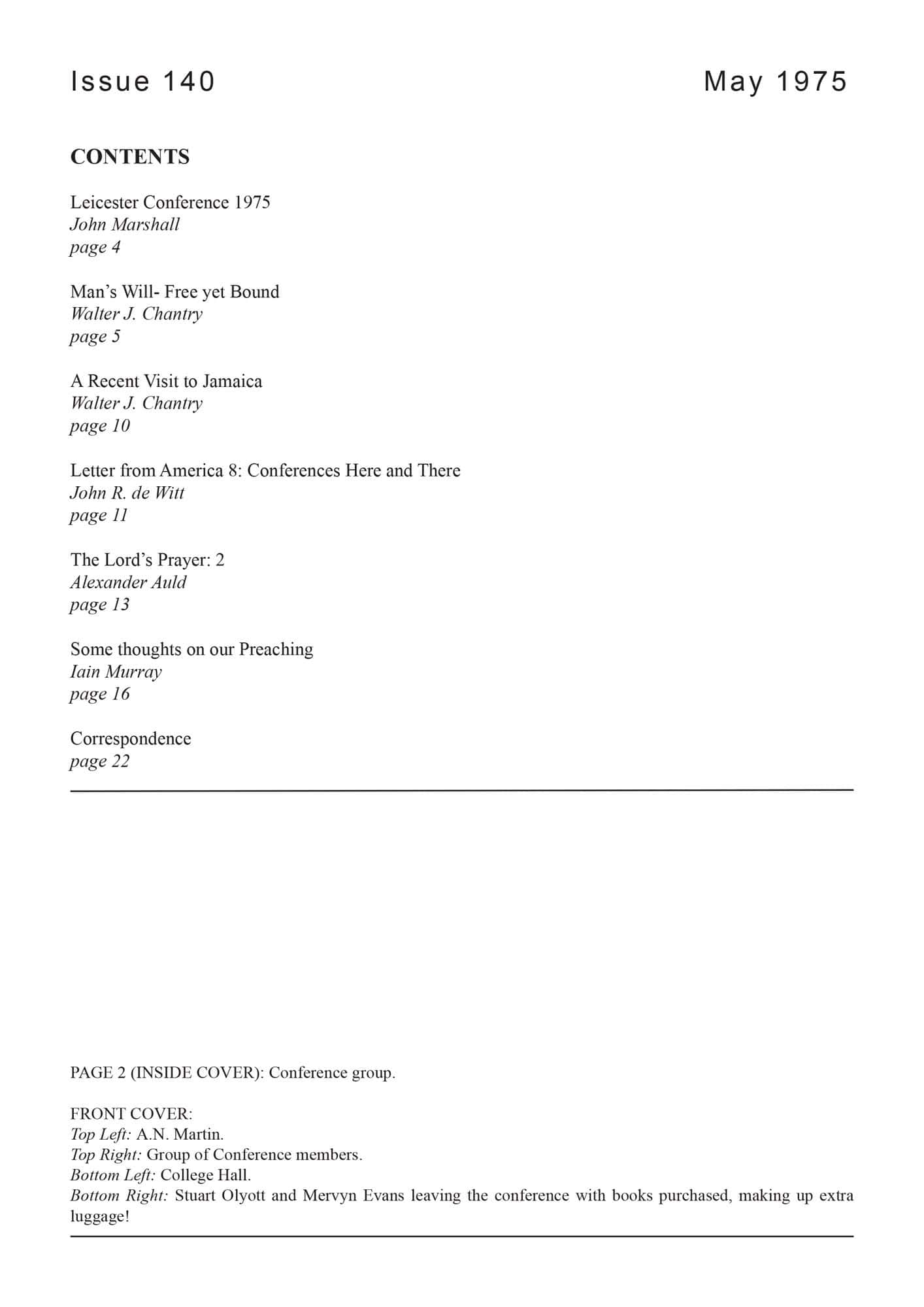 | Leicester Ministers Conference 1975 — Marshall, John E | 1-2 |