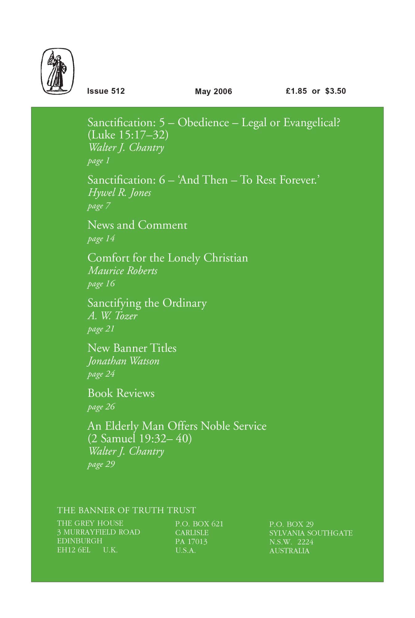 | Sanctification: 5 Obedience – Legal or Evangelical? Luke 15:17-32 — Chantry, Walter J | 1-6 |