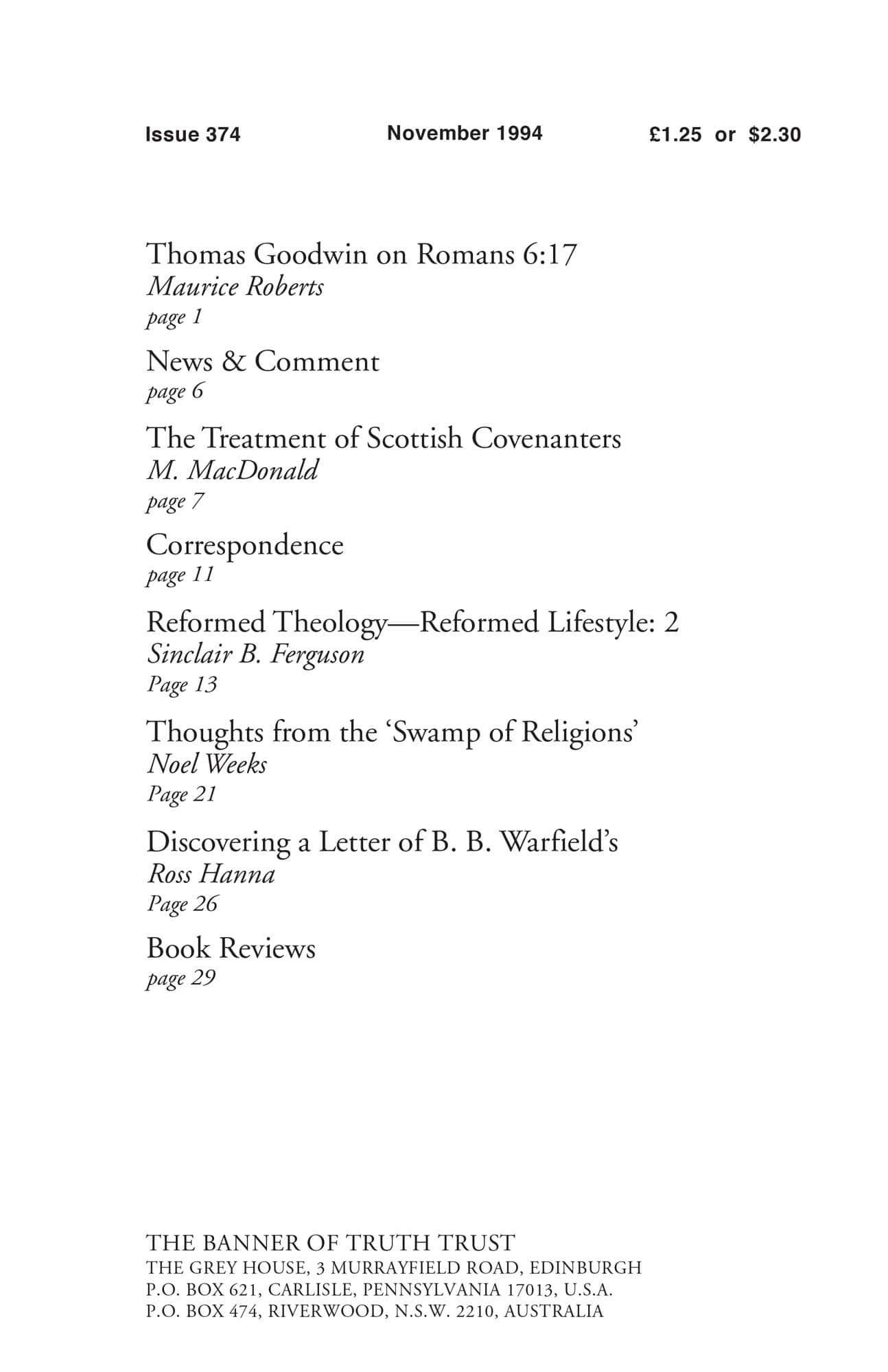| Discovering a Letter of B. B. Warfield — Hanna, Ross | 26-28 |