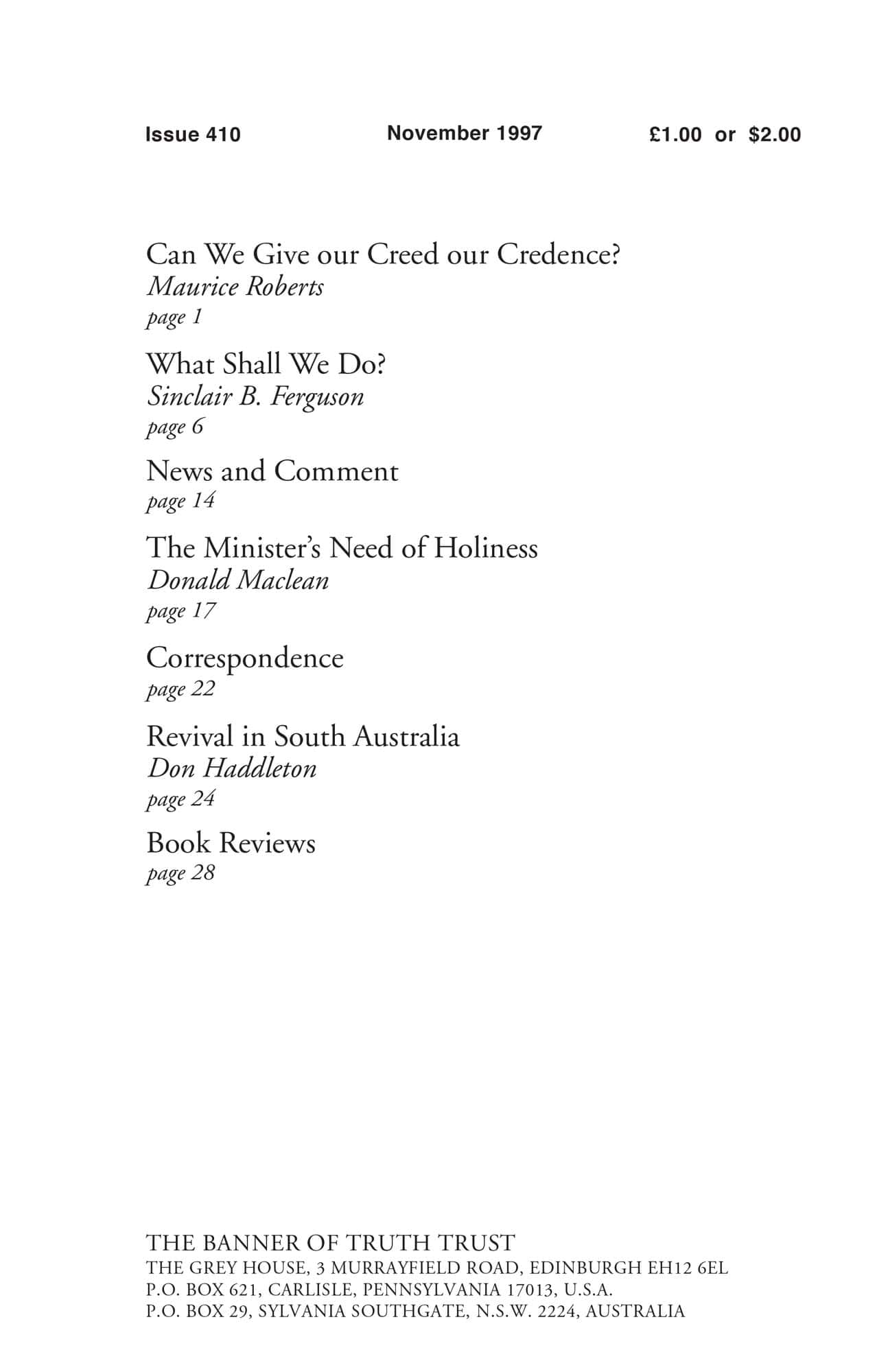 | Can we give our Creed our Credence? — Roberts, Maurice J | 1-5 |
