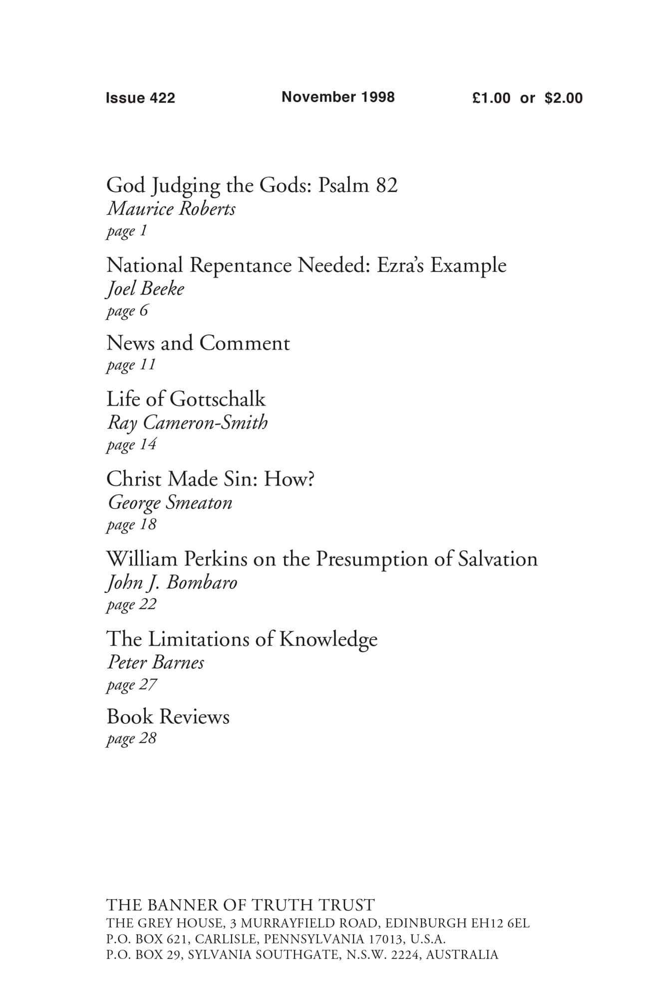 Subscribe to the Banner of Truth Magazine for 11 edifying issues each year (including summer double issue).