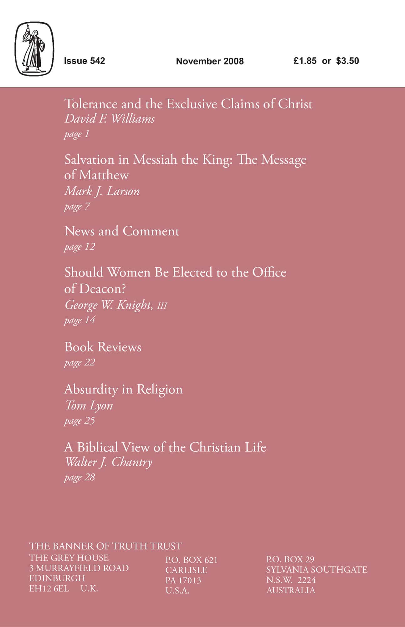 | Should Women be elected to the Office of Deacon? — Knight, George W, III | 14-21 |