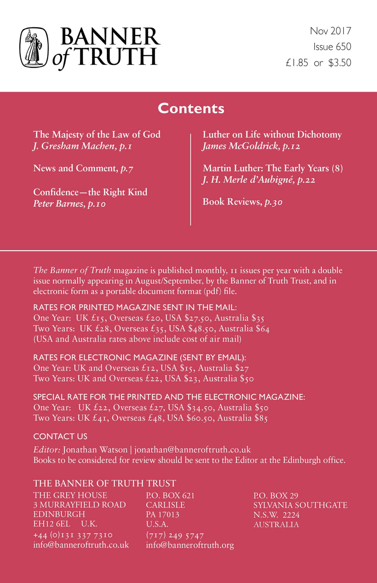 Subscribe to the Banner of Truth Magazine for 11 edifying issues each year (including summer double issue).