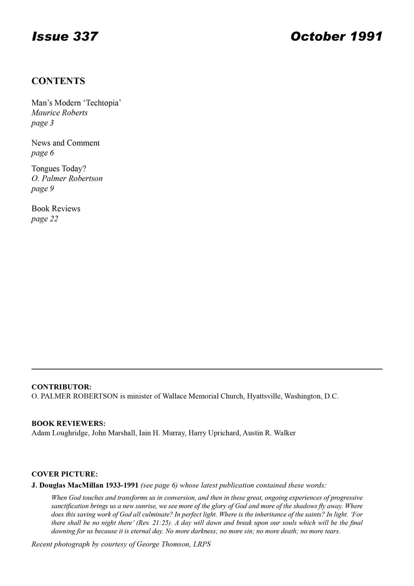 | Man’s Modern Techtopia — Roberts, Maurice J | 1-4 |