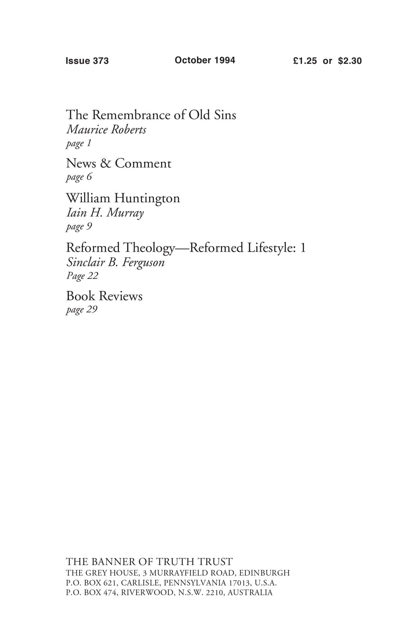 | Reformed Theology: Reformed Lifestyle (1) — Ferguson, Sinclair B | 22-28 |