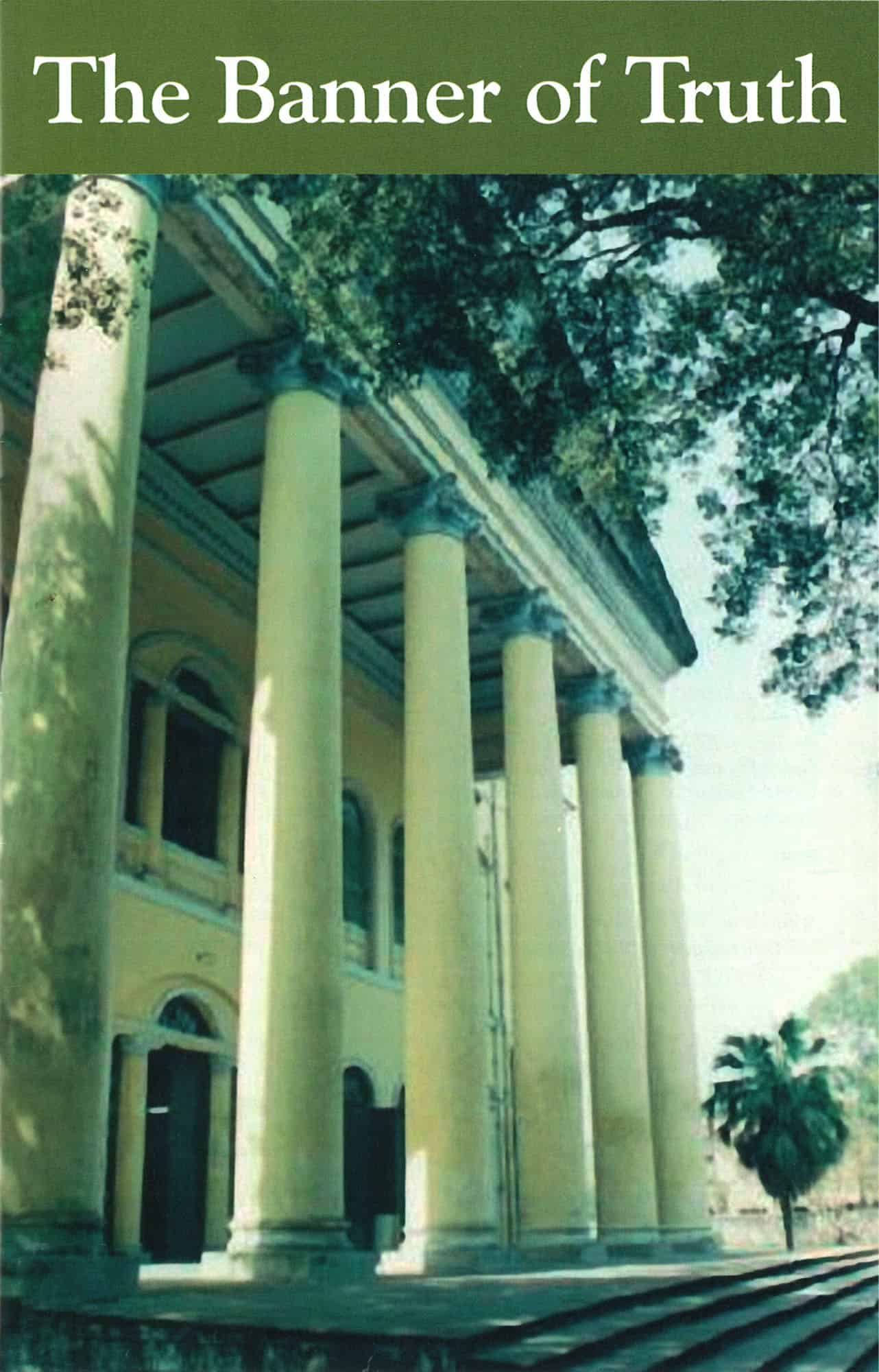 This binder holds two years’ issues and is made of stout board, with wire rods to hold the magazine in place. The name ‘Banner of Truth’ is stamped in gold on a black panel on the grey cloth.