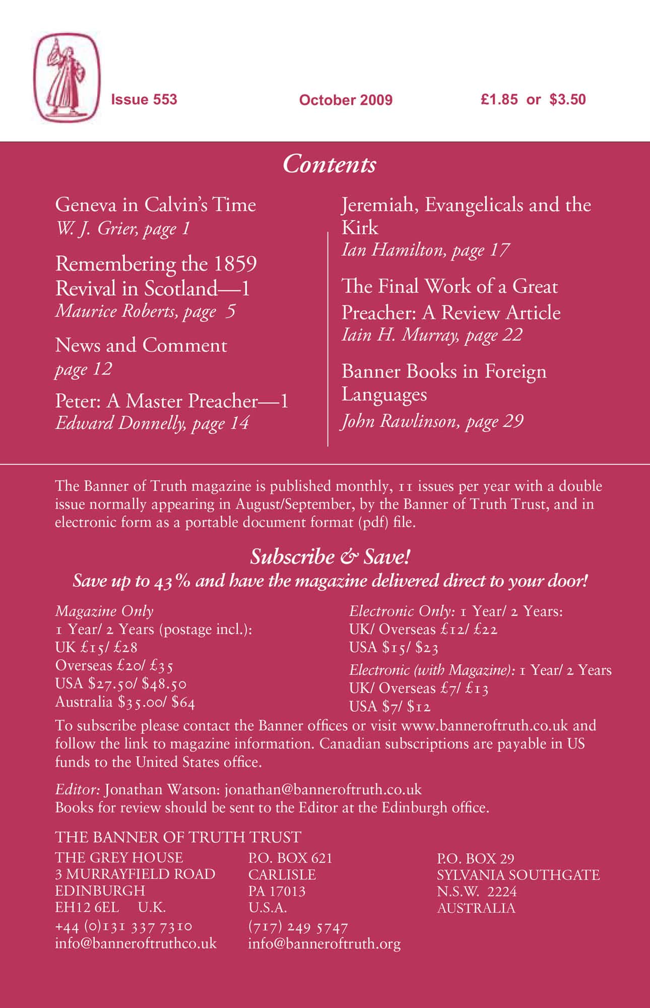 Subscribe to the Banner of Truth Magazine for 11 edifying issues each year (including summer double issue).
