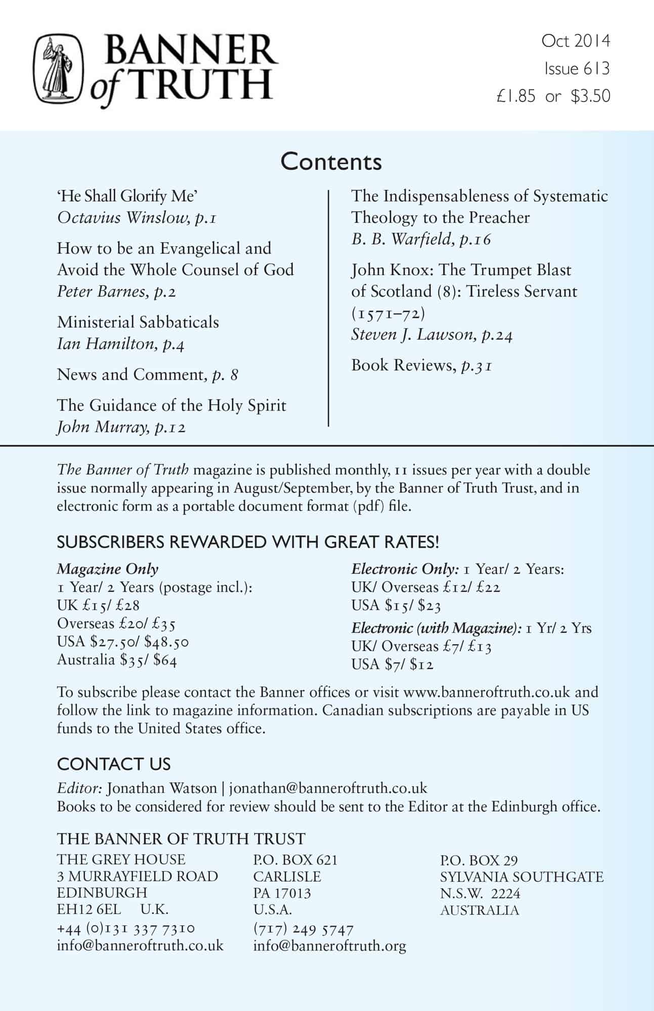 Subscribe to the Banner of Truth Magazine for 11 edifying issues each year (including summer double issue).