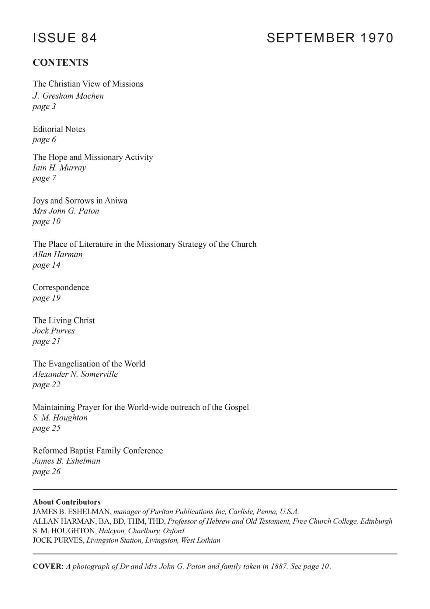 | Hope and Missionary Activity — Murray, Iain H | 7-11 |