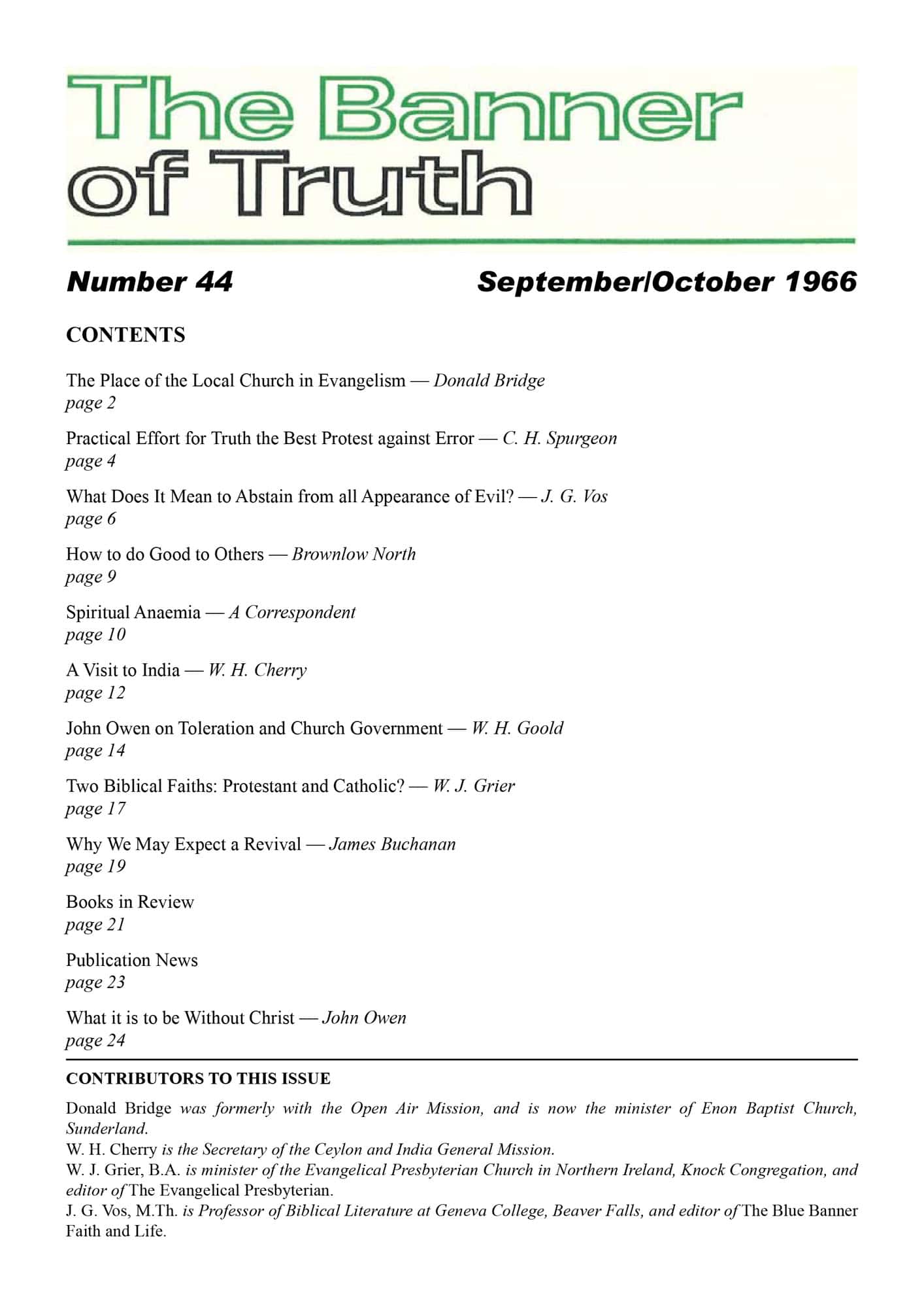 | Two Biblical Faiths: Protestant and Catholic? — Grier, W J | 17-18 |