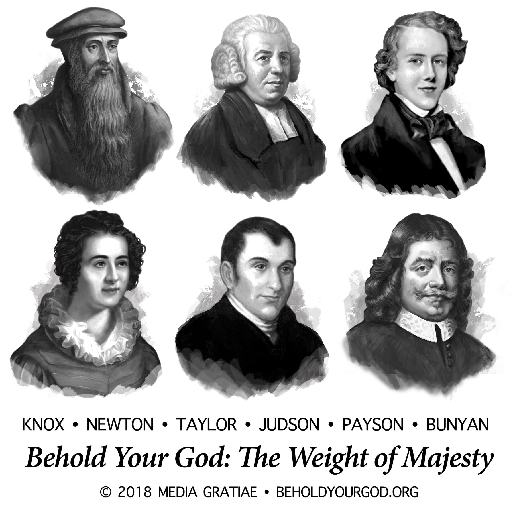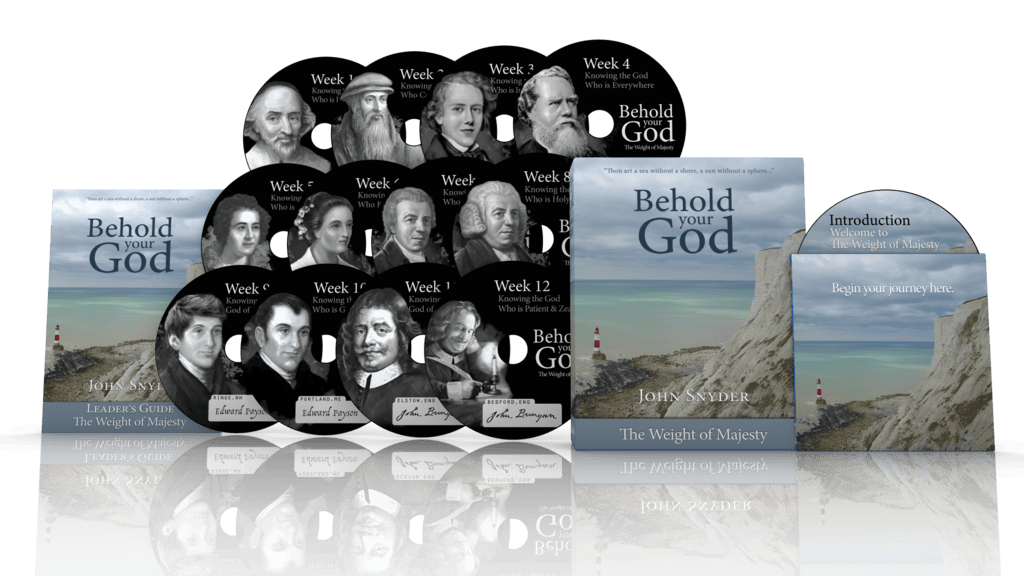 Behold Your God: The Weight of Majesty is a 12-week multimedia Bible study for churches, small groups, families, or individuals containing 12 sessions that are reinforced by a 12-week daily workbook (available here). Each week’s lesson is preceded by a brief two-part historical profile of a notable man or woman of God such as John Knox, Hudson Taylor, Anne Judson, John Newton, Edward Payson, and John Bunyan. These introductions were filmed on location in England, Scotland, and New England at key historical sites associated with the lives of the men and women we are considering.