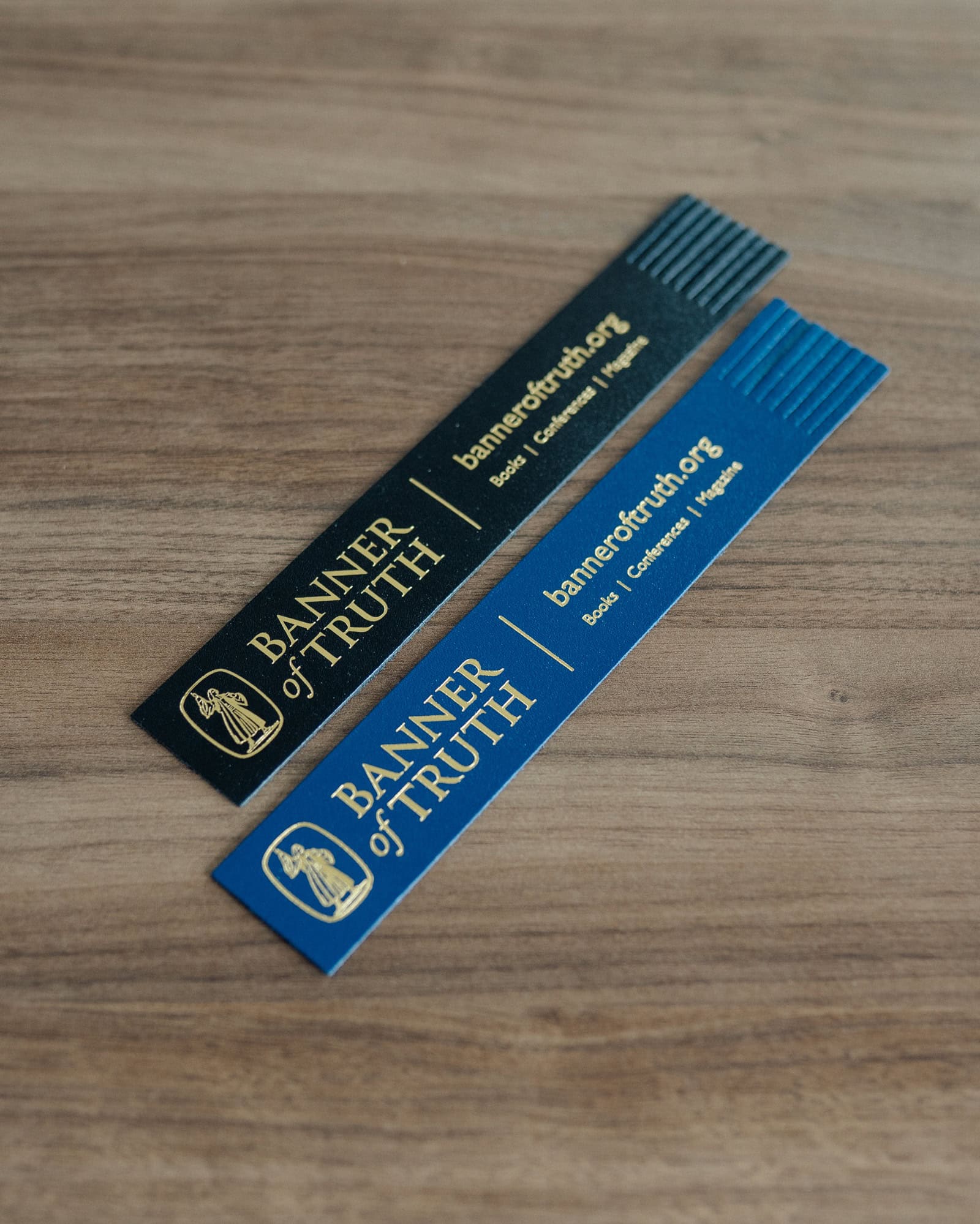 This premium leather bookmark comes in two colours: Banner Blue, or Black, with gold lettering. A perfect gift for the Banner book reader.
