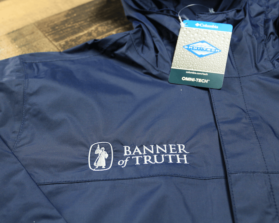 The Banner of Truth Rain Jacket, made by Columbia™, was introduced at the 2019 East Coast Ministers’ Conference. A waterproof-breathable, fully seam-sealed jacket, this will keep you warm and dry even in the wettest climates and conditions.