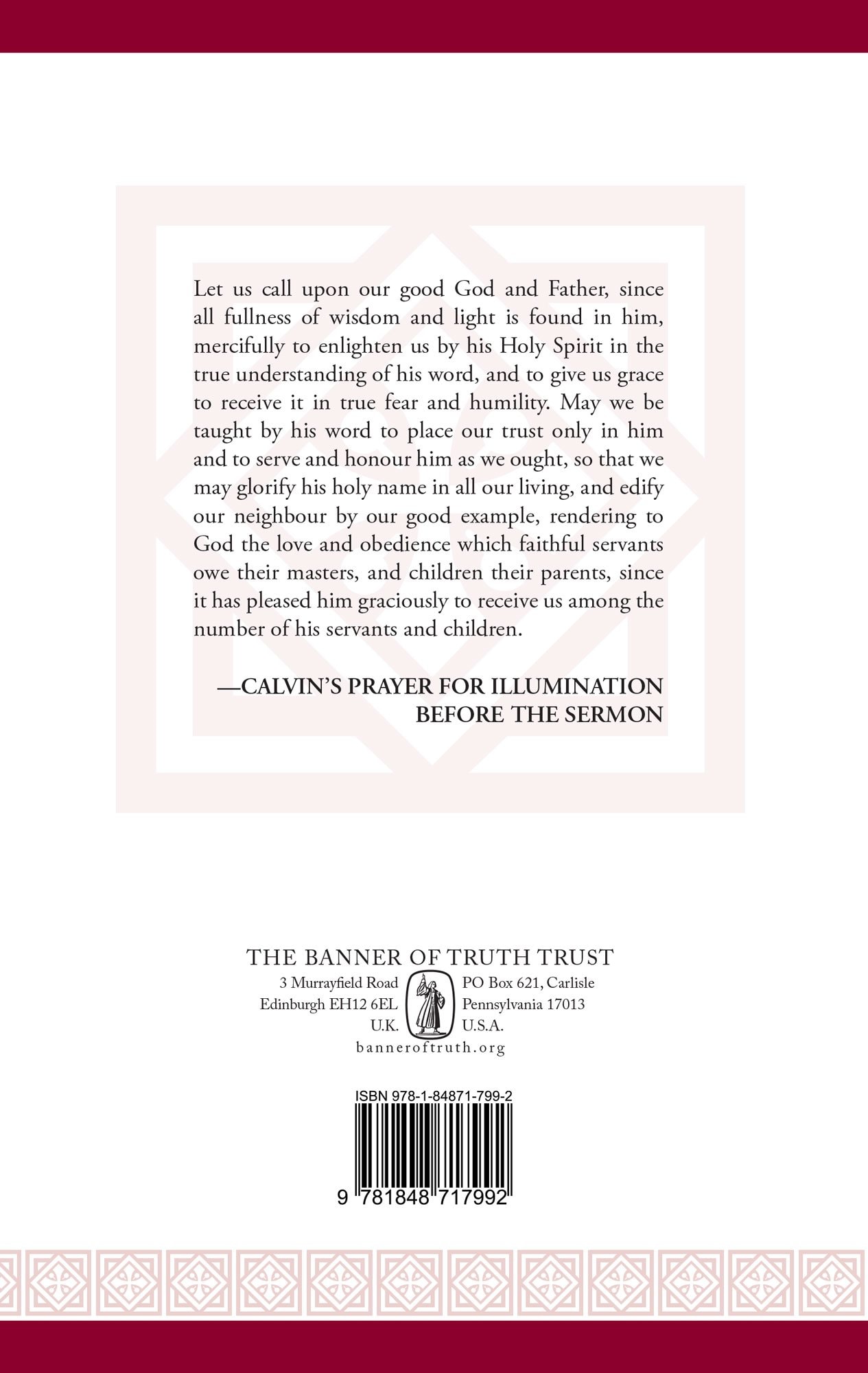 Robert White formerly taught in the department of French Studies at the University of Sydney, Australia, and has a specialist interest in the Reformation in French-speaking areas of Europe. He is the translator of Calvin’s Sermons on the Beatitudes, Songs of the Nativity, Faith Unfeigned, A Guide to Christian Living, and The Institutes of the Christian Religion (1541 edition), which are also published by the Trust.