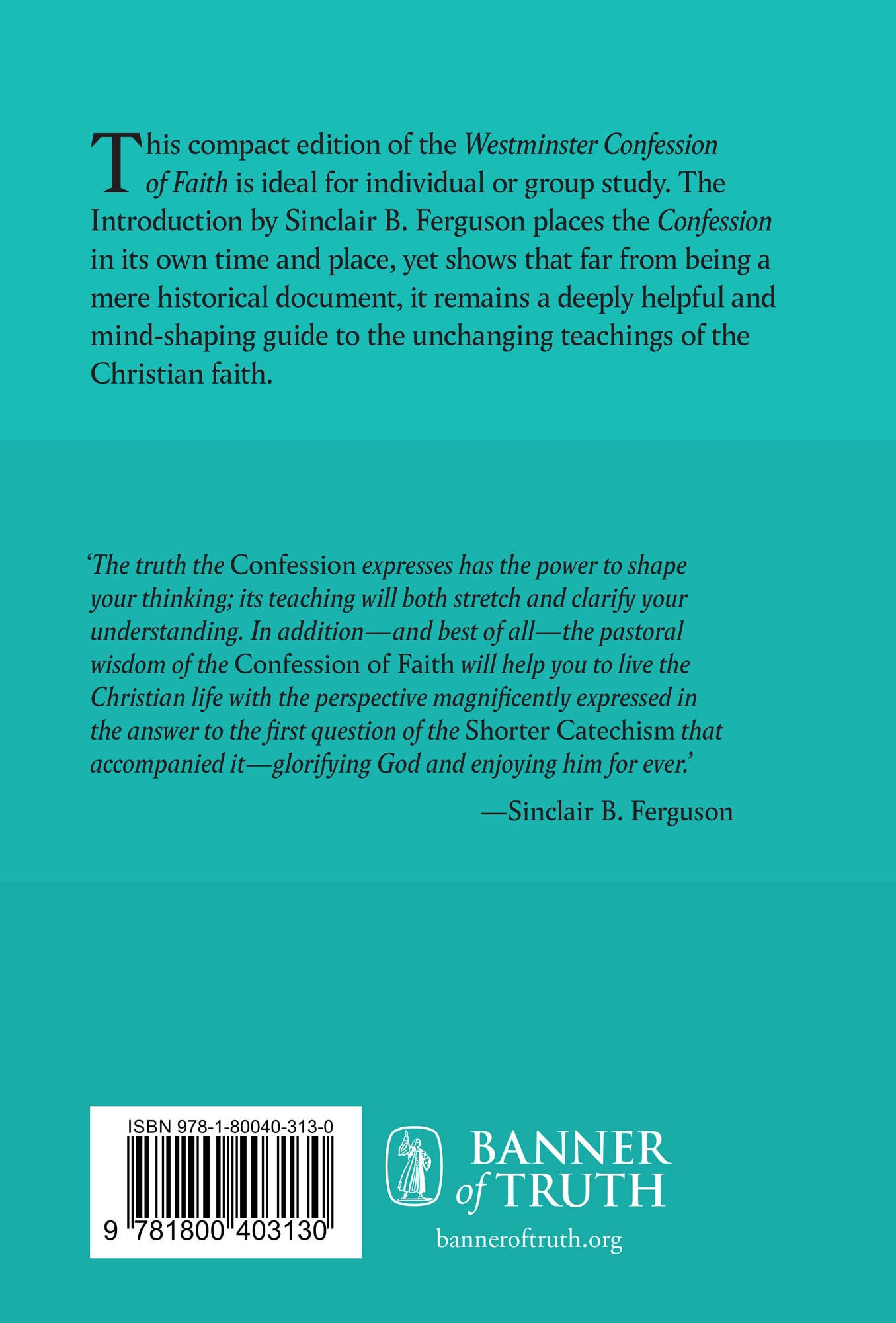 This compact edition of the Westminster Confession of Faith is ideal for individual or group study. The Introduction by Sinclair B. Ferguson places the Confession in its own time and place, yet shows that far from being a mere historical document, it remains a deeply helpful and mind-shaping guide to the unchanging teachings of the Christian faith.