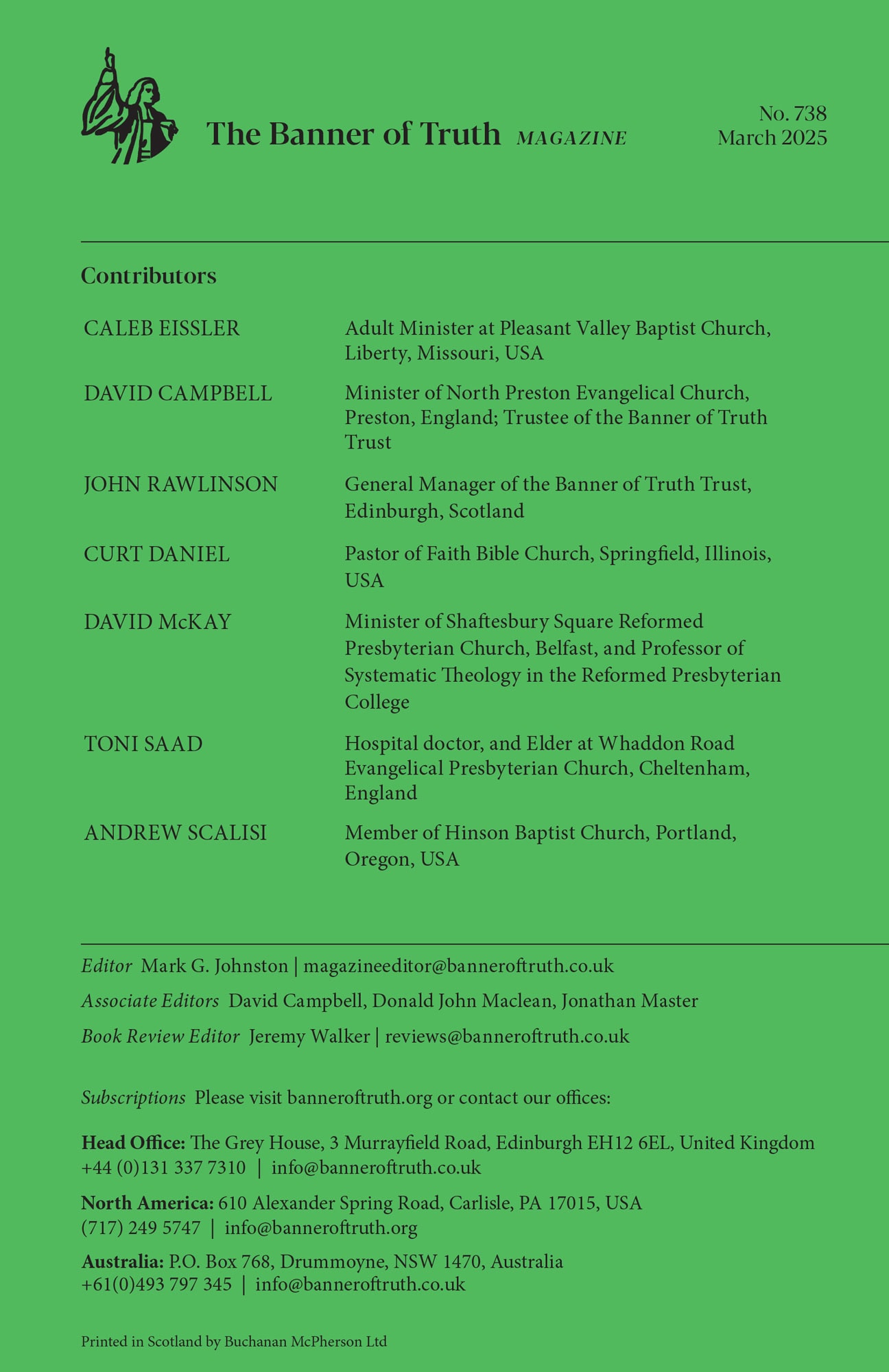 Table of Contents Our Benevolent Sovereign , Charles Hodge Evangelistic Preaching Today [1] , Gary Benfold News and Comment The Priority of the Apostles , Eric J. Alexander The Ministry We Need , Nicholas Murray Advice for Young Preachers , Theodore L. Cuyler Book Reviews